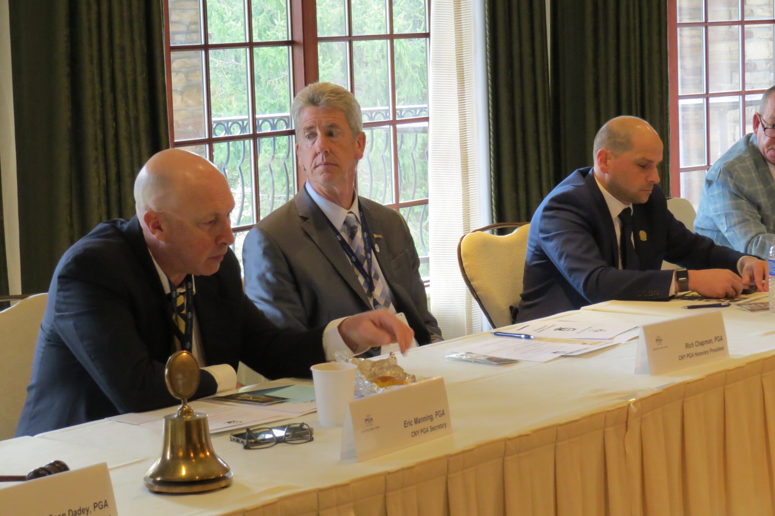 Each CNY PGA Member at the Spring Meeting received a set of three lapel pins with one being the Centennial logo which was created by Alternate Golf Logos. Company president Ryan Gabel, a former PGA Professional, and Zach Vinal, PGA Associate (Yahnundasis Golf Club) spoke to the membership regarding the design and the importance of an impactful logo.