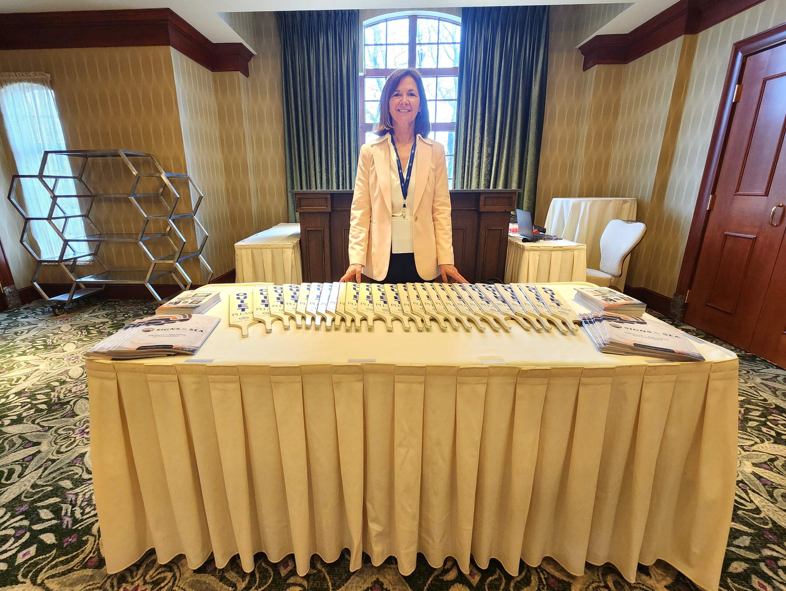 Sue Douglas of Signs by the Sea, a Featured Partner and Product Gift Partner, was in attendance to talk to members. Signs by the Sea provided a CNY PGA custom wood “Quiet” sign with the CNY PGA logo for attendees.